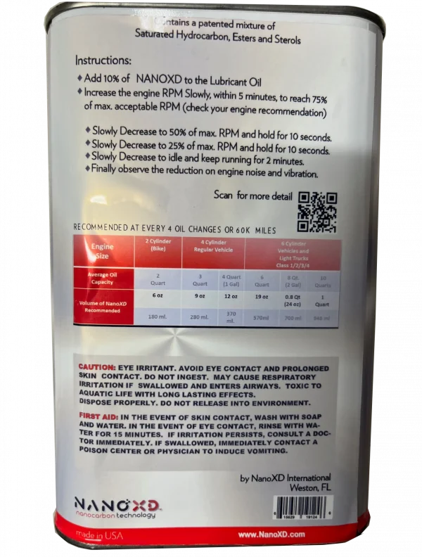 - Pour NanoXD oil, using 10% of your vehicle’s oil capacity.